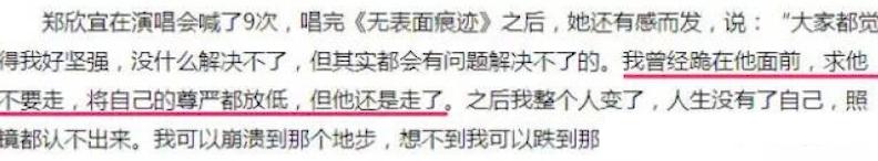 为了挽回这段关系郑欣宜不惜一切代价,甚至还下过跪,但男方还是走了。