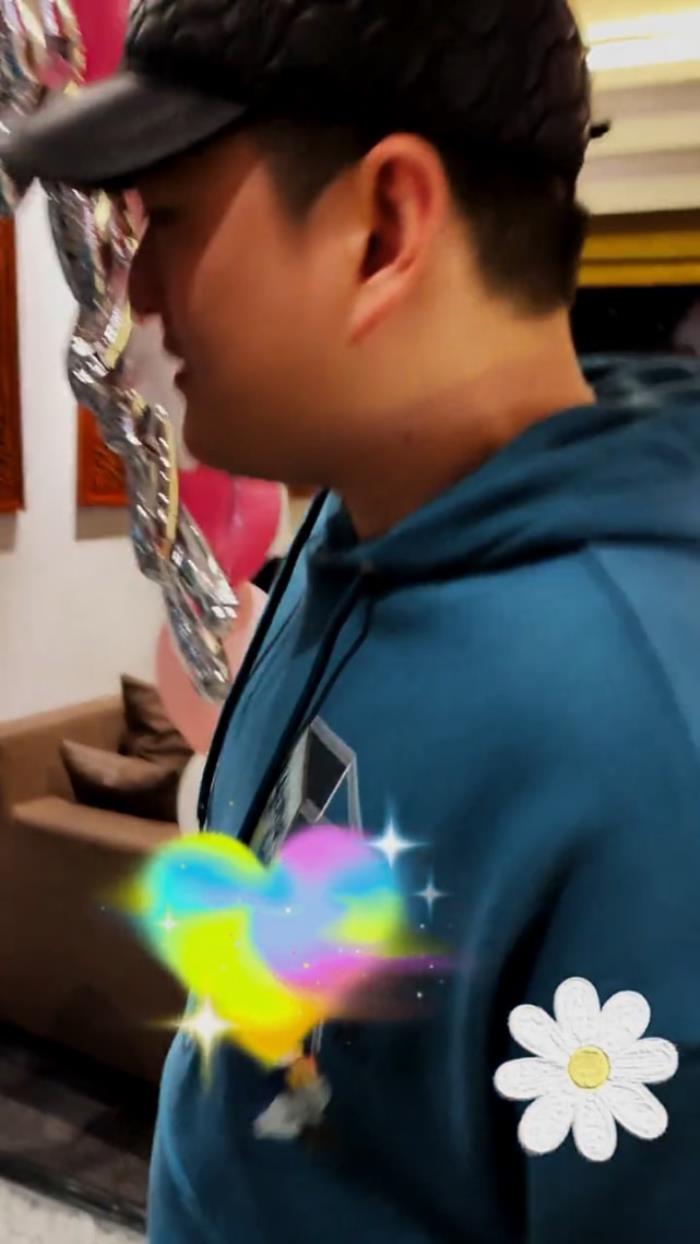 相对于妹妹球球而言,哥哥牛牛性格比较低调,他没有一起出镜唱生日歌,但画面还是捕捉到了他从镜头前从容经过的画面。只见牛牛身穿卫衣,头戴黑色鸭舌帽,脸上带着憨厚的笑容。画外音还传出女士爽朗的笑声,想必应该是当晚的主人公马丽娟了。