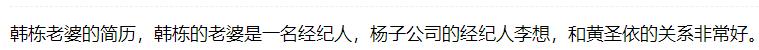 早年有网友爆料称,韩栋的老婆名叫李想,是一位经纪人,和黄圣依夫妇关系很好。对于这些传言,韩栋没有公开回应过,孰真孰假也只有他自己知道了。