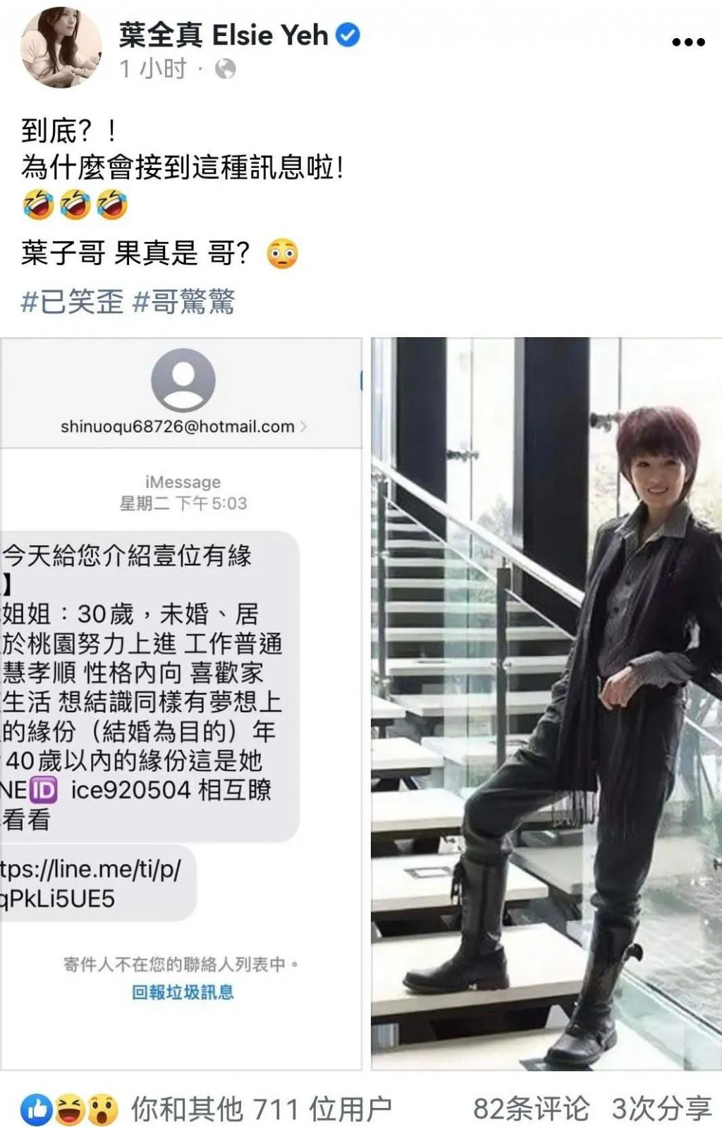 有人认认真真发来信息,给她介绍靠谱对象,对方是位女生,被她哭笑不得晒出来。