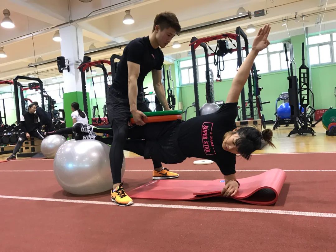 △徐梦桃正在进行力量训练