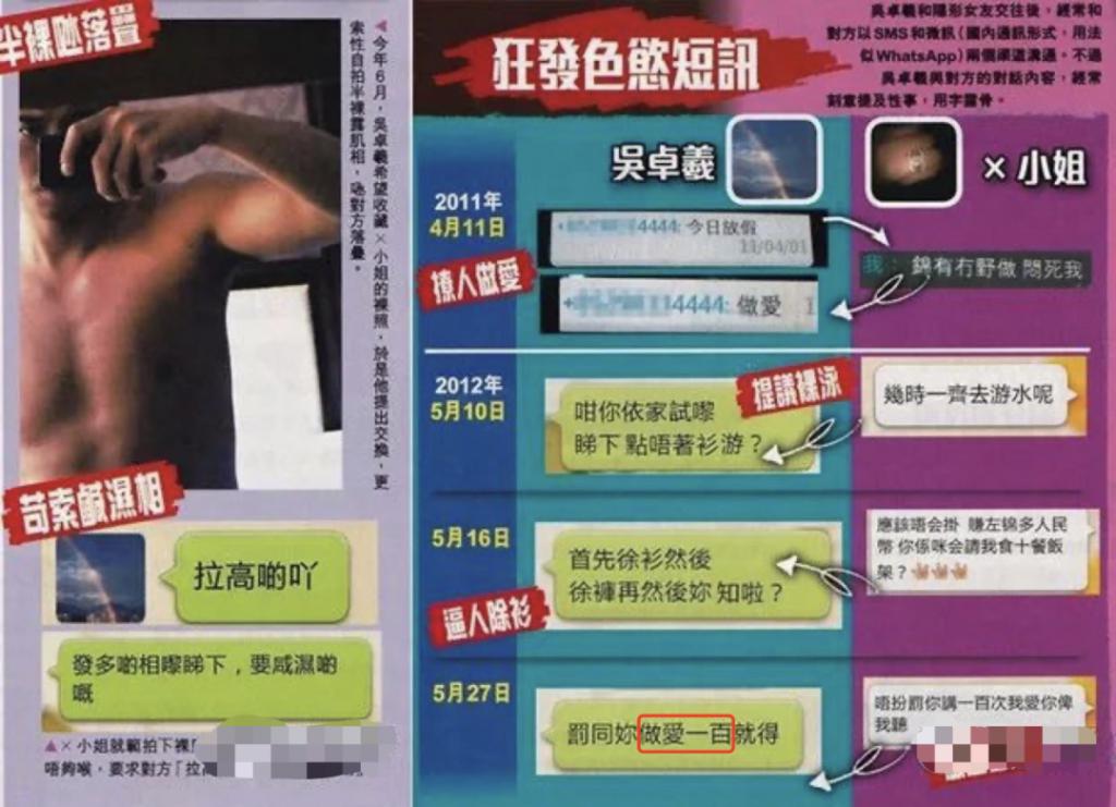 一富家女曝光了吴卓羲和自己交往期间晒半裸上身,提议裸泳,撩人 18 禁。