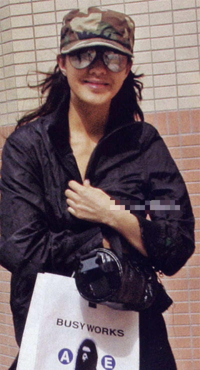 墨镜下的她,素颜。为避免走光,双手紧紧抓着外套。