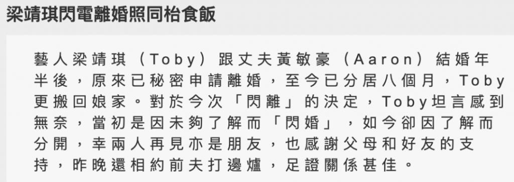 亲密贴身的女伴正是新婚 10 个月的梁靖琪。