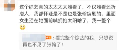 张翰的所有作品和综艺都是他本人对女性态度的说明书——女性是彻底的玩物,用来征服的,低智,不管怎样的面貌,本质只有一个:" 把男人奉为神 "。