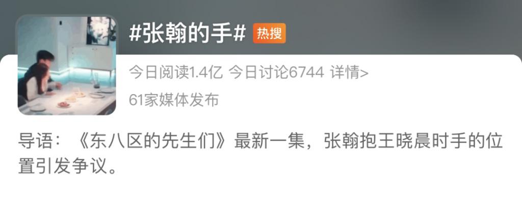 上了热搜的 " 张翰的手 ",就是他把女主抱在身上的时候,手直接摸到了胸部。