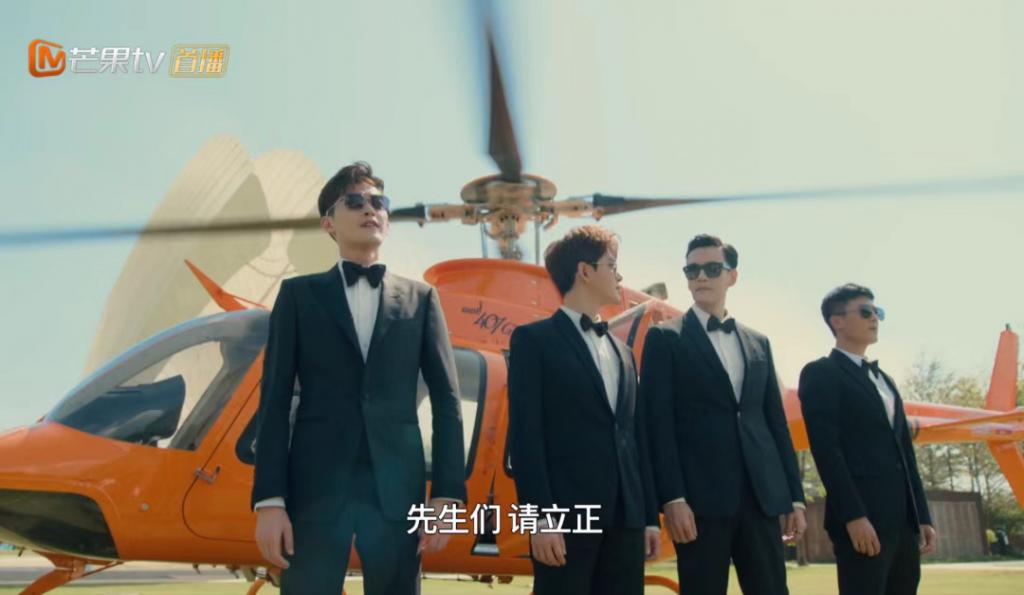 四个男人给同学当伴郎,豪车都装不下他们的 " 装 ",必须要直升飞机飞下来。