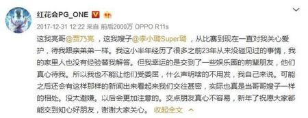 第二步,爆料后,PG第一时间,也就是中午发布声明,说自己和贾乃亮、李小璐是很好的朋友关系。
