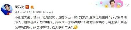 第三步,贾乃亮发微博说自己相信兄弟相信老婆。
