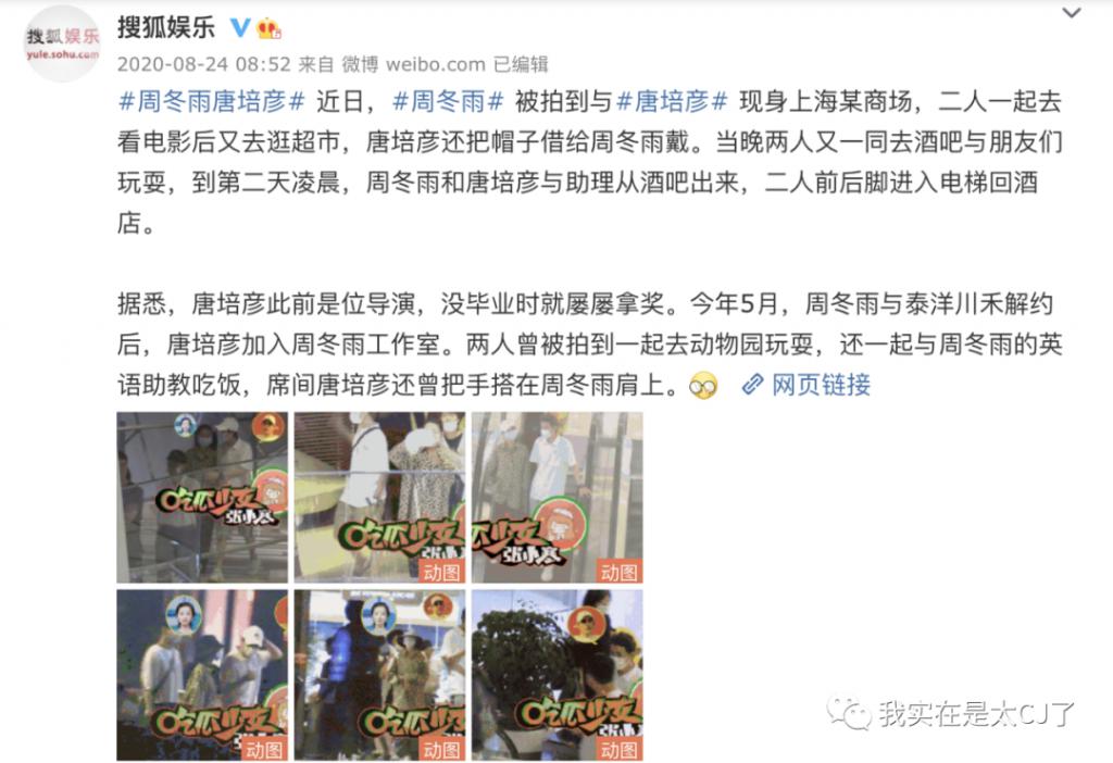 说起来唐培彦也曾在周冬雨的绯闻宇宙中有过姓名。2020年8月,两人看电影、逛超市、去酒吧、回酒店的一连串行动被狗仔解读成了"情侣关系"。