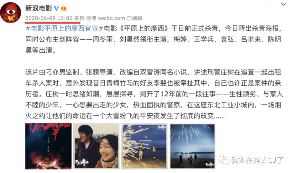 但受疫情影响,《平原上的摩西》直到3月26日才正式开工拍摄,6月初杀青。