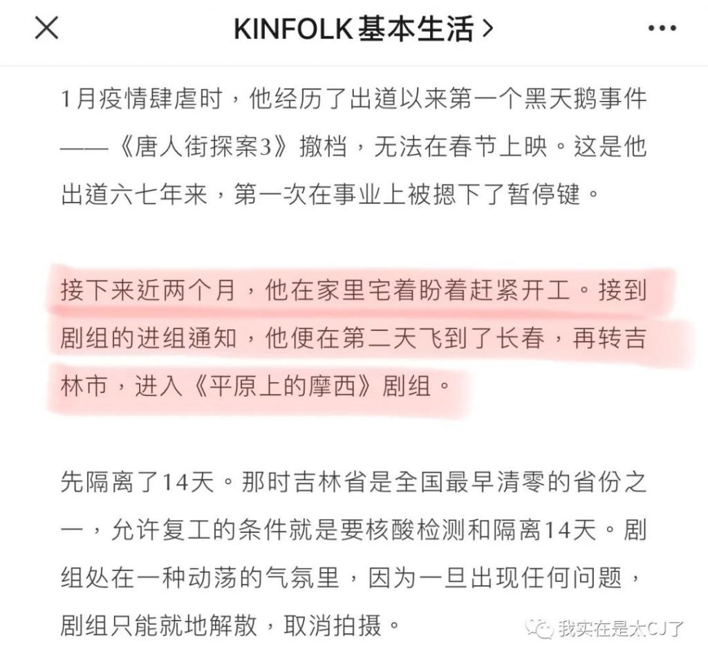 剧组原定2020年1月开机,刘昊然2月底3月初就到了长春开始进组的种种准备