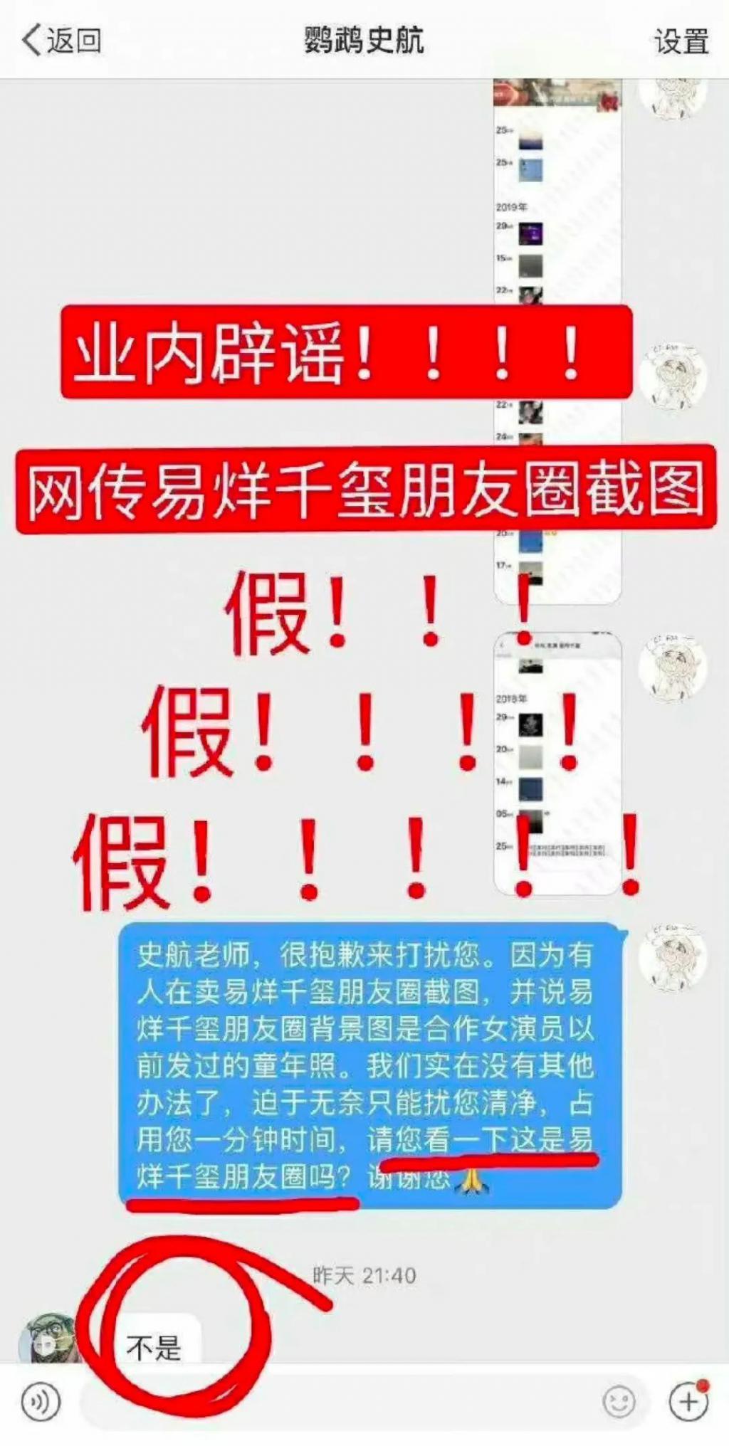 以及卓伟和鹦鹉史航的打假截图,以表示跟易烊千玺有相当交集的圈内人都在帮忙澄清