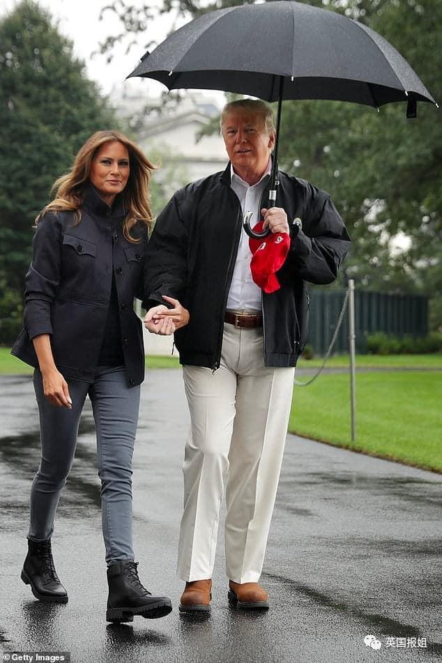 2018 年,川普和梅拉尼娅正离开白宫准备去遭受飓风影响的灾区慰问。