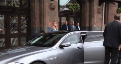 这里看梅拉尼娅的表情已经很不好了,本来还在笑,现在完全黑脸。