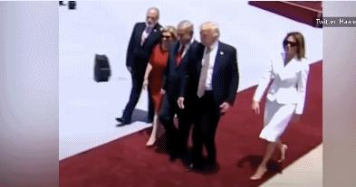 梅拉尼娅则被丢在最后。不过梅拉尼娅到这时候也不会跟川普客气了,一头就从川普身前扎进了飞机。