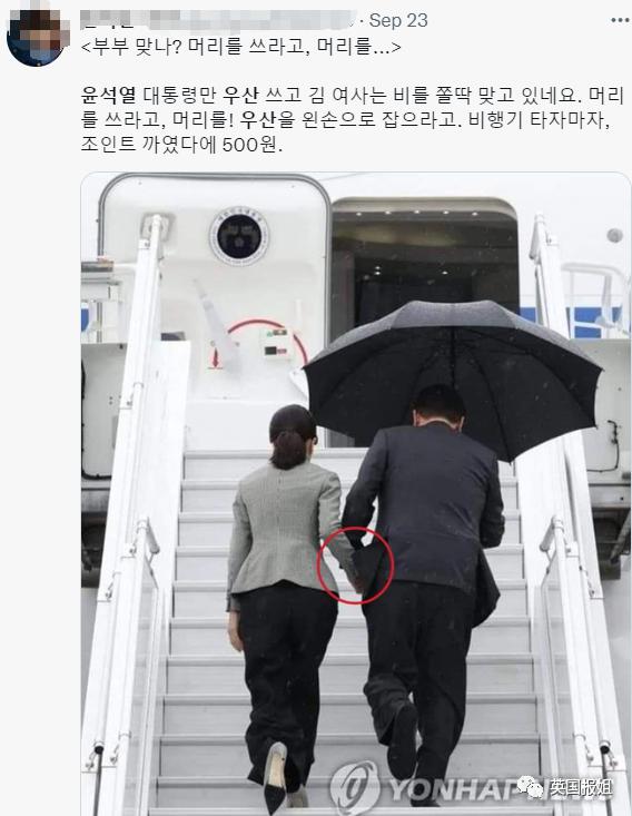 23 日,一系列名为 " 尹锡悦总统独自打伞 " 的帖子在 ins 和推特上迅速走红,让尹锡悦的爱妻人设崩了一地。