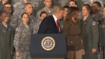 2017 年川普刚上任,他和梅拉尼娅在一个军事基地做活动,梅拉尼娅上台发言后。川普竟然拒绝了拥抱,只给了梅拉尼娅一个很商务的握手,气氛超级尴尬。