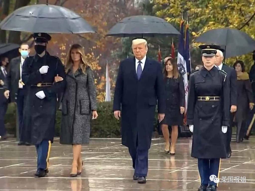 终于等到川普的戏瘾过足了,梅拉尼娅又挽起丈夫的胳膊,意思不要太明显:帮老娘撑伞!
