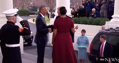 说到奥巴马,川普刚上任时和梅拉尼娅到白宫交接,川普下车后头也不回地走了,没有等一下的意思,连回头看一眼都没有。抱着一大盒礼物的梅拉尼娅在后面不知所措。