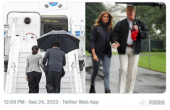 尹锡悦的大翻车还让网友想起了川普撑伞的名场面。不得不说,尹锡悦被称为韩国川普不是没有理由的,这俩在不顾别人感受这一点上半斤八两。
