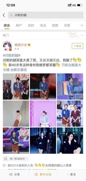 而正是因为闫妮有着如此与众不同的魅力,大家才会喜欢她,喜欢她就会关注她,于是当闫妮在《快乐大本营》中大秀美腿时,她的腿也自然而然上了热搜。