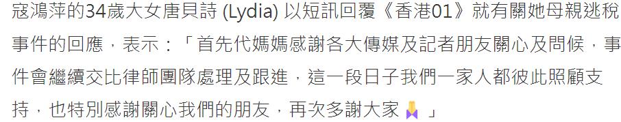 ▲唐贝诗对于妈妈被判有罪的回应。