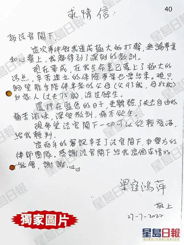 因为之前已经定罪,这次主要判定刑期,能做的就是尽量争取法官的同情,争取缓刑或者减少刑期,她还写过求情信。