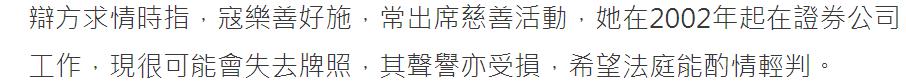 寇鸿萍涉案金额大概在百万港币左右,真的不多,但基于寇鸿萍的职业属性,不管是理财、保险都别想再做了。