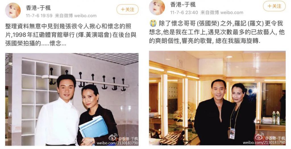 ▲于枫在2015年因胃癌过世,生前两年积极治疗还是不敌病魔。她最后一任男友是交往了将近20年的歌手叶振棠,叶红得较早,内地人最熟的一首歌是他唱的《万里长城永不倒》的原唱,《浮生六劫》、《笑傲江湖》、《临江仙》、《天地英雄》都由他唱的主题曲,于叶二人交往直到于枫去世。图为于枫和叶振棠合影旧照。