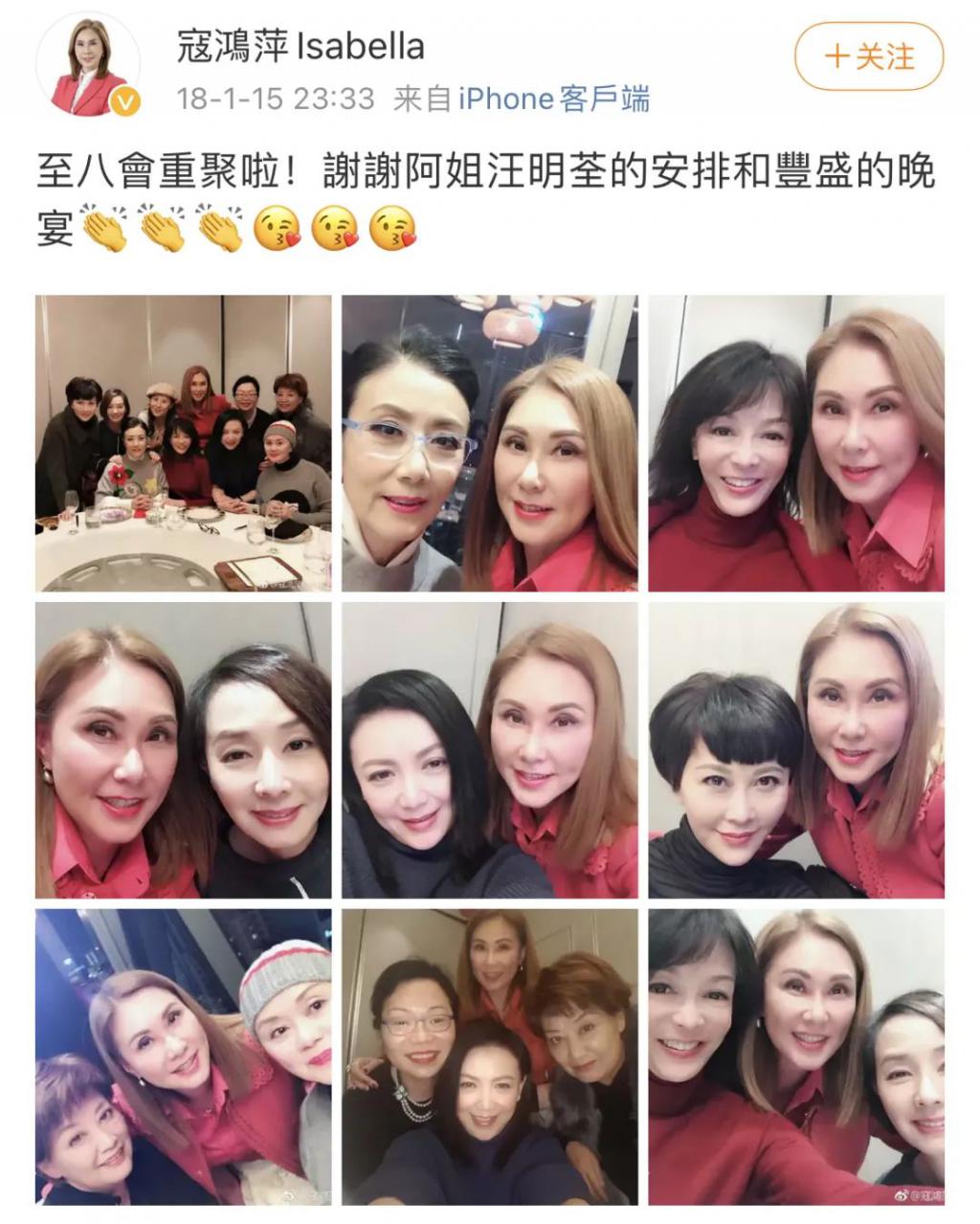 ▲最后一次晒聚会时2018年,之后寇鸿萍就和至八会渐行渐远了。可能大家生活不同吧,毕竟其他成员都和娱乐圈多多少少有点关系,她已经完全是商人了,不过能在一起玩上快十年也是不短了。会里的Do姐郑裕玲和她关系最好,也是她大女儿的契妈。