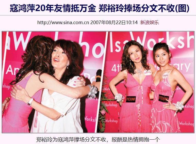2003年寇鸿萍创立了护肤品牌,2007年品牌四周年时还举行了盛大的周年派对,当时除了一家人,亲闺蜜郑裕玲也免费捧场,给足了寇鸿萍面子。