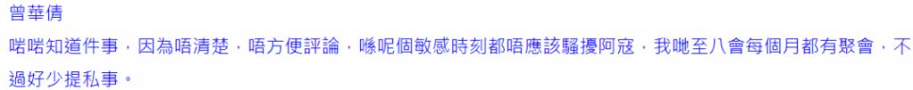 ▲寇鸿萍反击媒体爆料老公的物业没有自己的名字,和孩子的学费问题,她的意思是孩子的学费有前夫,而她亦是公司高职员工,买得起楼也付得起款。