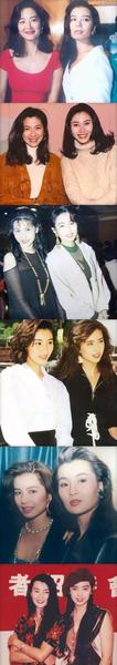 刘嘉玲,张曼玉那时候看上去都很羞涩,微微抿嘴的样子,可爱又含蓄,倒是梅艳芳看上去淡定又大气,这张也是绝版照了……