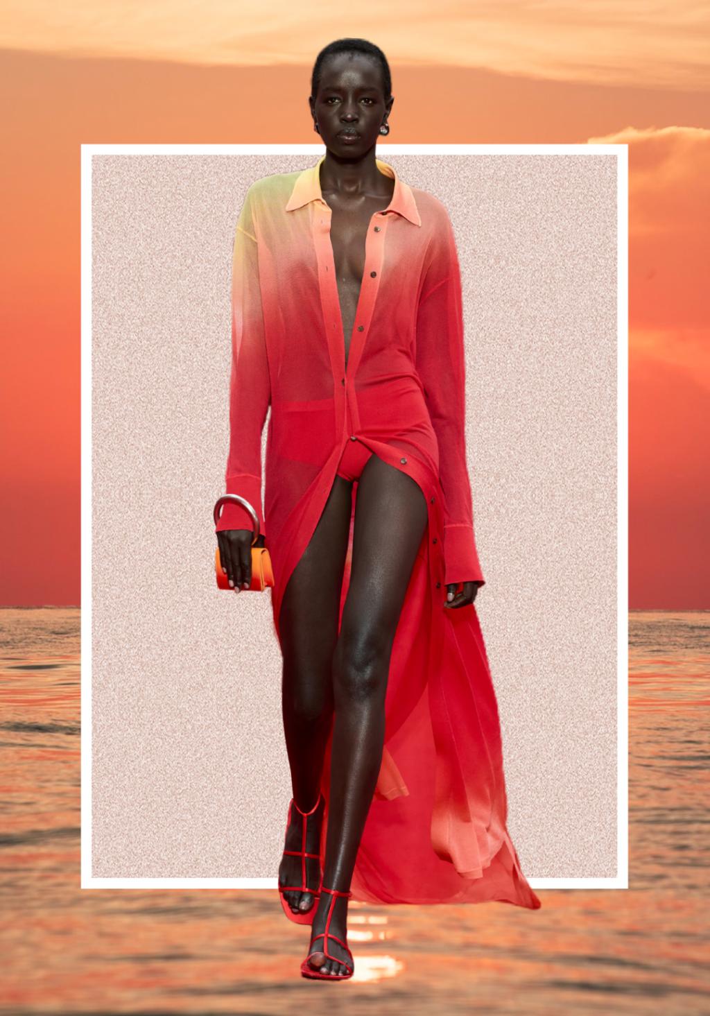 而红黄渐变无疑是最接近落日晚霞的颜色,这些渐变的色彩又被呈现在轻柔的欧根纱和府绸之上,让人感觉轻柔又曼妙。