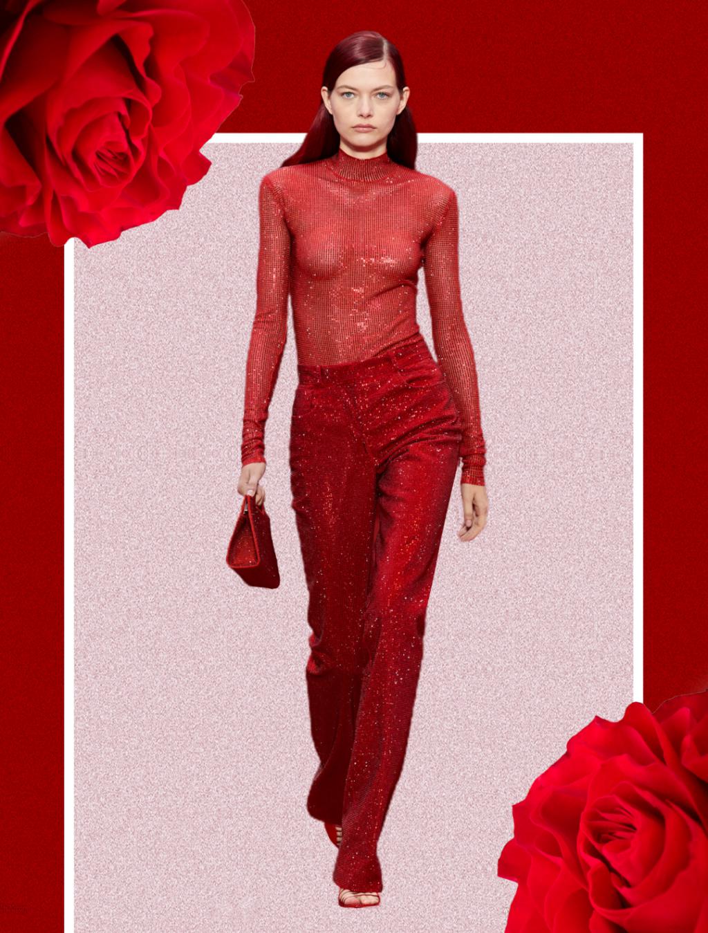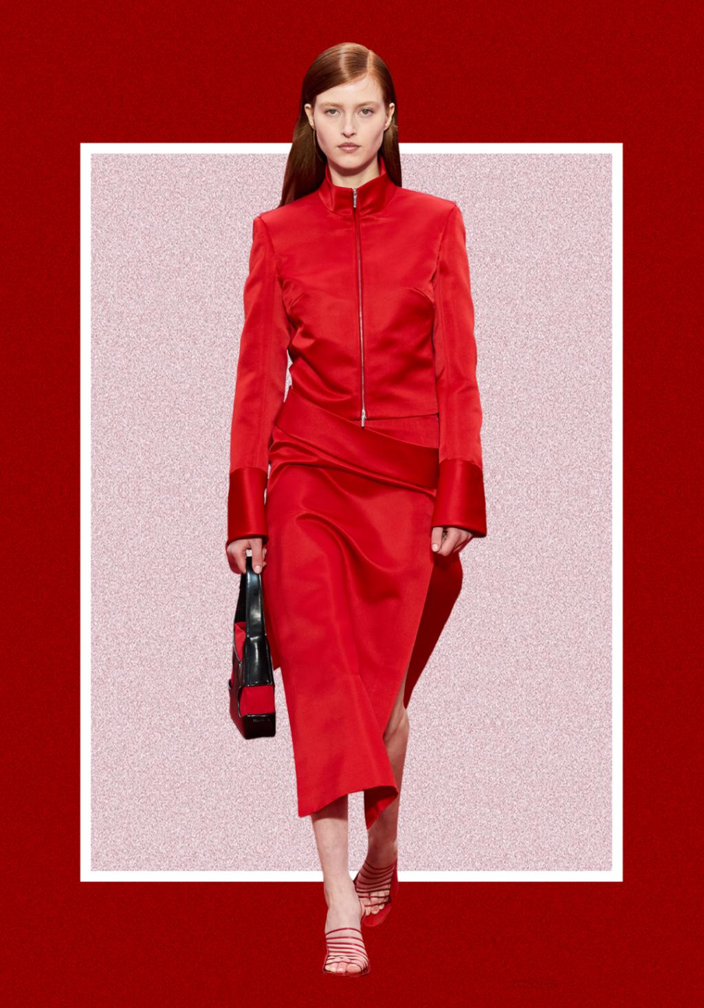 这次大秀上也有很多从头红到脚的Look。