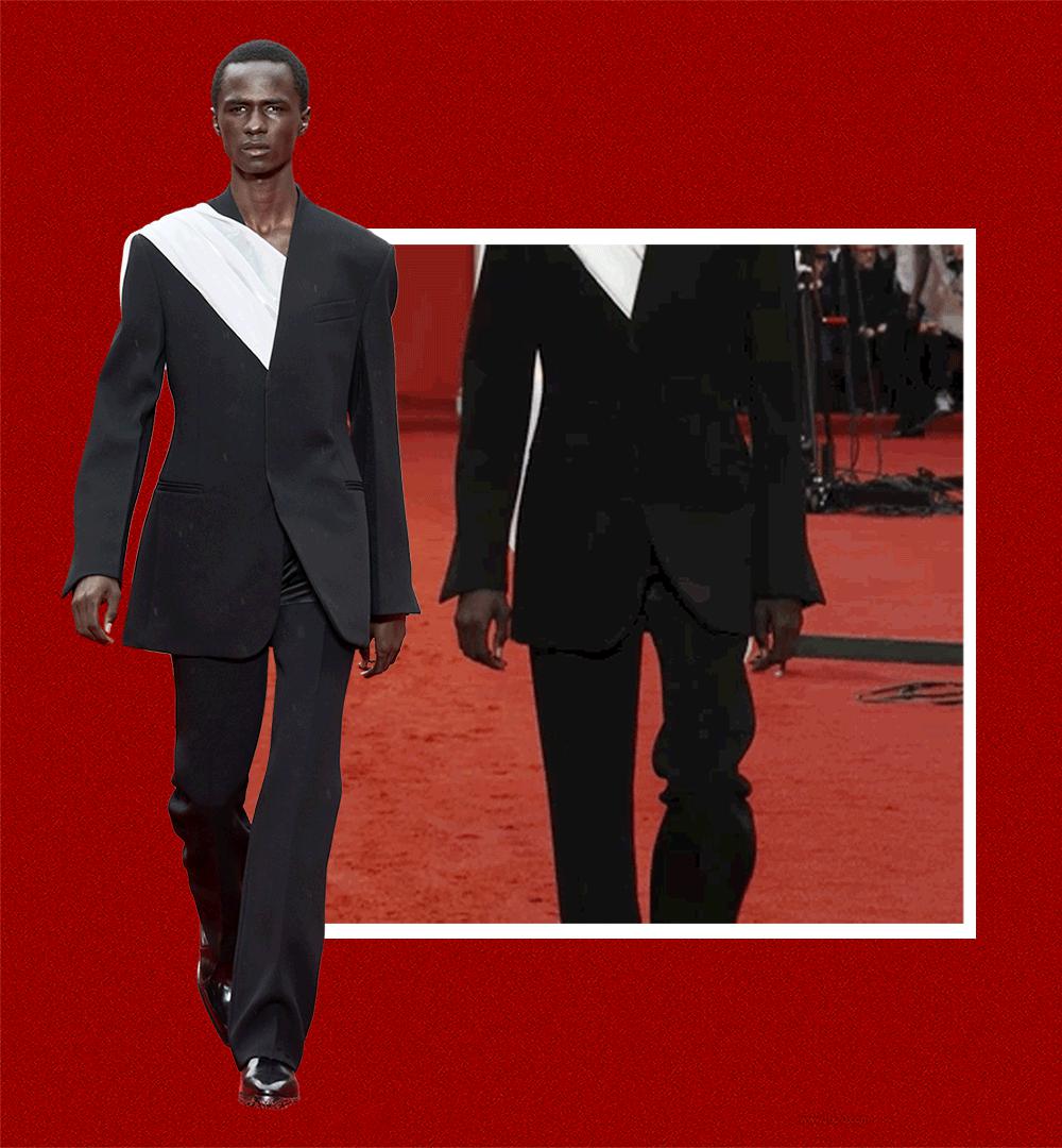 所以在这场大秀中,我们可以看到很多非常考验剪裁工艺的西装造型。