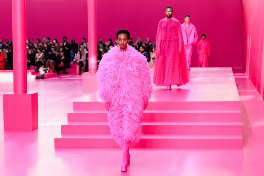 设计总监Pierpaolo Piccioli认为,粉色不一定是柔弱的,它曾经也象征着阳刚之气,现在是重新赋予它力量的时候。