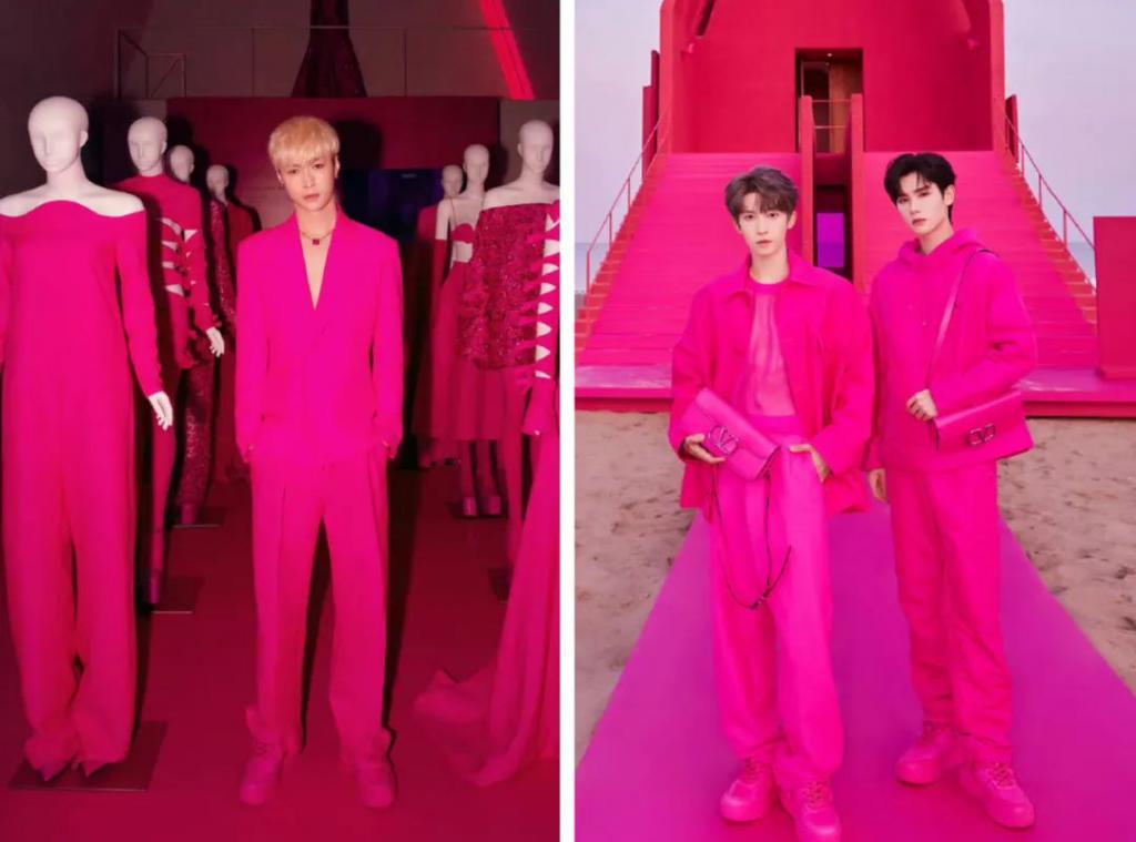 甚至连男装都出现了芭比粉的total look。