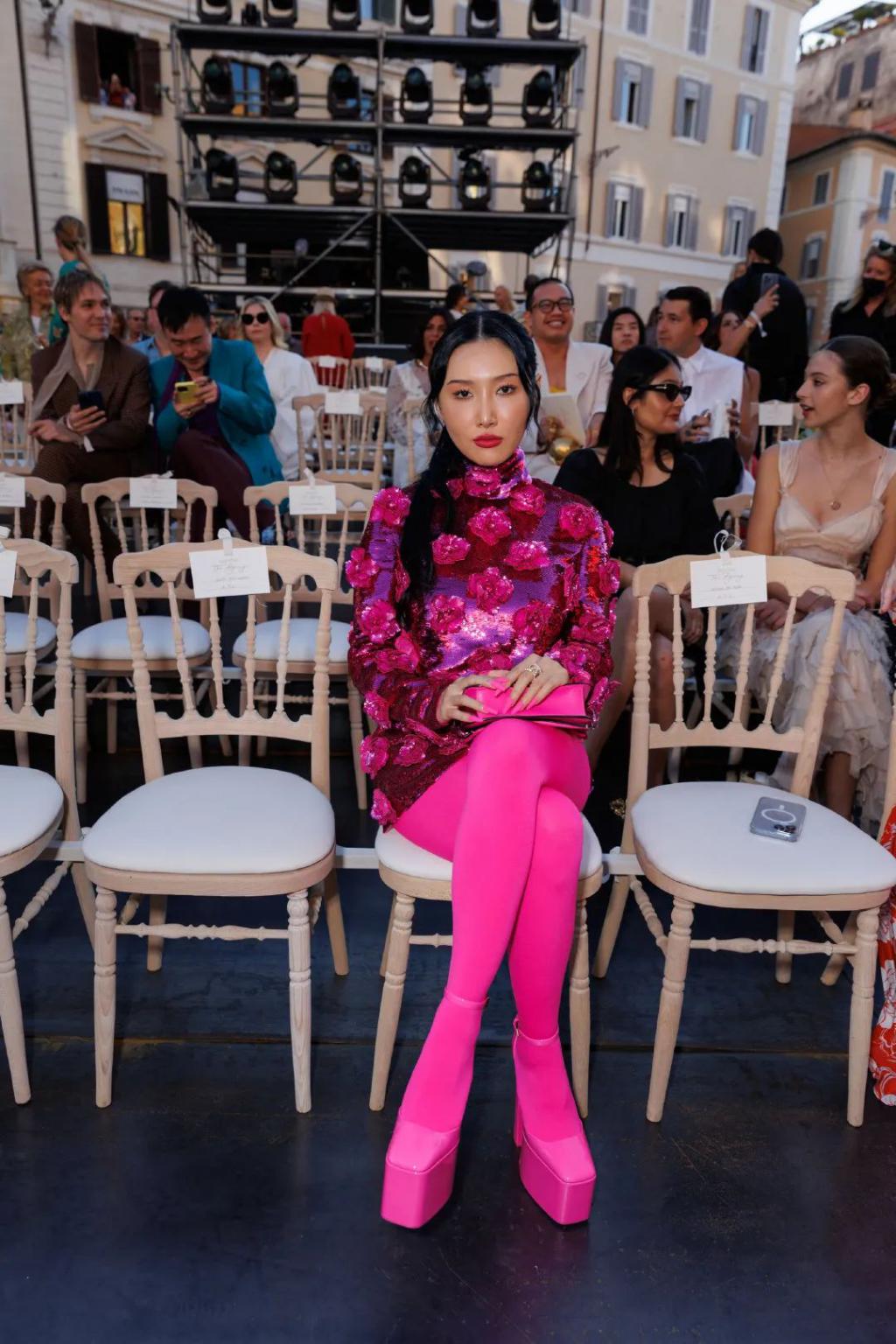 7月份Valentino在罗马举行了高定秀,来看秀的嘉宾穿成了粉红军团。