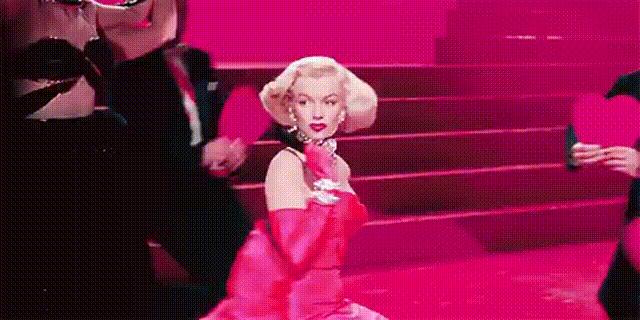 时间快进到1953年,《绅士爱美人》里的梦露,凭借一身玫瑰粉红裙,成为影史上无法忽视的一个大众情人形象。