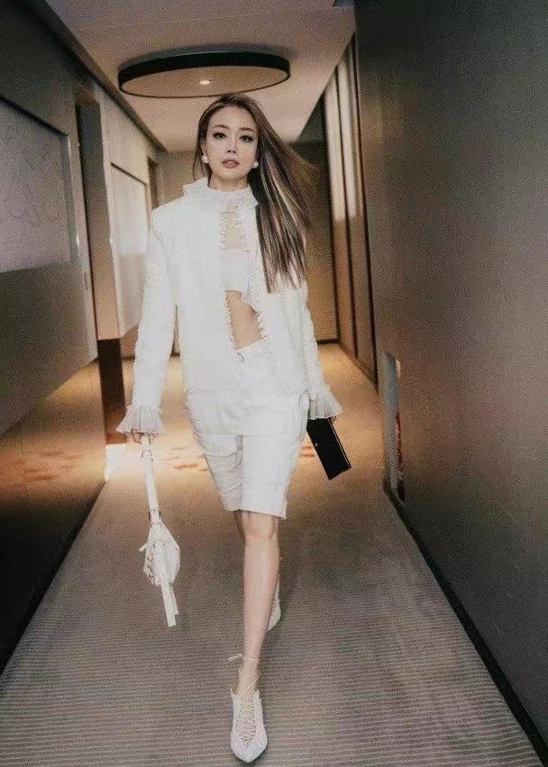 只见容祖儿身穿全白套装站在秀场门口,双手插兜,脸上带着甜甜的笑容,双腿纤细宛如竹竿一般,打扮酷飒宛如御姐一般。