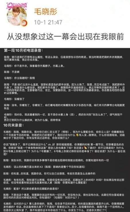 而陈翔的迷惑操作也是多到离谱,在节目上立单身人设,在真人秀上卖惨,出轨后还污蔑毛晓彤故意陷害自己。