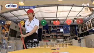 习惯在舞台上发光的金泰亨,原地化身扫地机、洗碗机、上菜机。