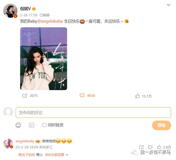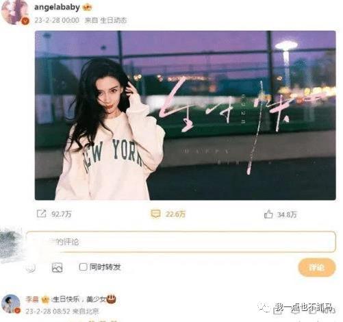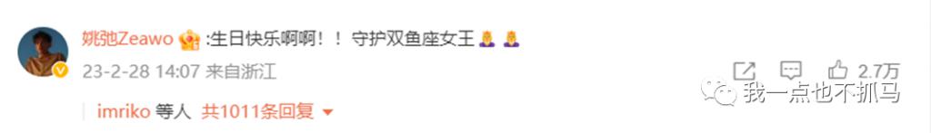 唯一一个来评论区占坑,掩盖一下空白尴尬的艺人叫姚弛。他大方送出祝福:" 生日快乐,守护双鱼座女王。"