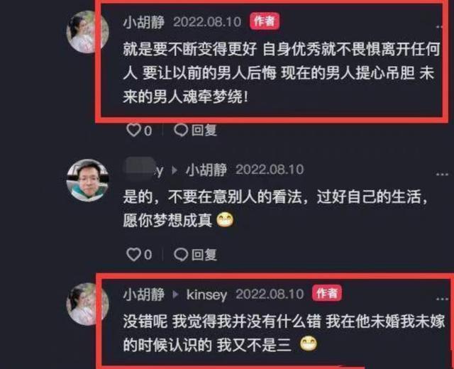 小胡静还表示要让自己不断地变好,这样才能不畏惧任何人的离开,也能够让以前的男人后悔,言语之中似乎还带有些不满和遗憾。