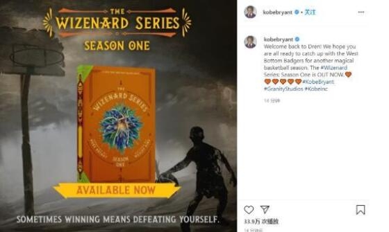 配文是:上面写道,“欢迎回到德伦,希望你们都准备好了迎接西底美洲獾队的又一个魔幻的篮球赛季!《威兹纳德系列》第一季已经推出!”,其中这里面说的德伦是科比这部小说当中的一个虚构的地方。