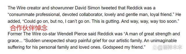 除了深感震惊的网友以外,兰斯的合作伙伴和好友也先后发声悼念。他所属的影业公司也发布讣告称:" 如果没有兰斯 · 莱迪克、和他对角色查伦的人性和倔强魅力进行的无与伦比的深度演绎,约翰 · 威克(《疾速追杀》系列男主角)的世界就不会是现在这个样子。兰斯留下了不可磨灭的遗作和令人印象深刻的作品,但我们将铭记他是我们可爱、快乐的朋友和礼宾员。我们感到震惊和心碎,我们向他深爱的家人和全球喜爱他的人表示最深切的哀悼。"