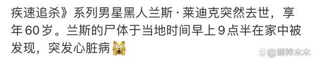 最近,影视圈又传噩耗。据美媒报道,美国男星兰斯 · 莱迪克当地时间周五早上 9 点半在家中离世,享年 60 岁。该消息一经公布,不仅令网友感到十分震惊悲痛,还有好莱坞知名男星发文悼念。
