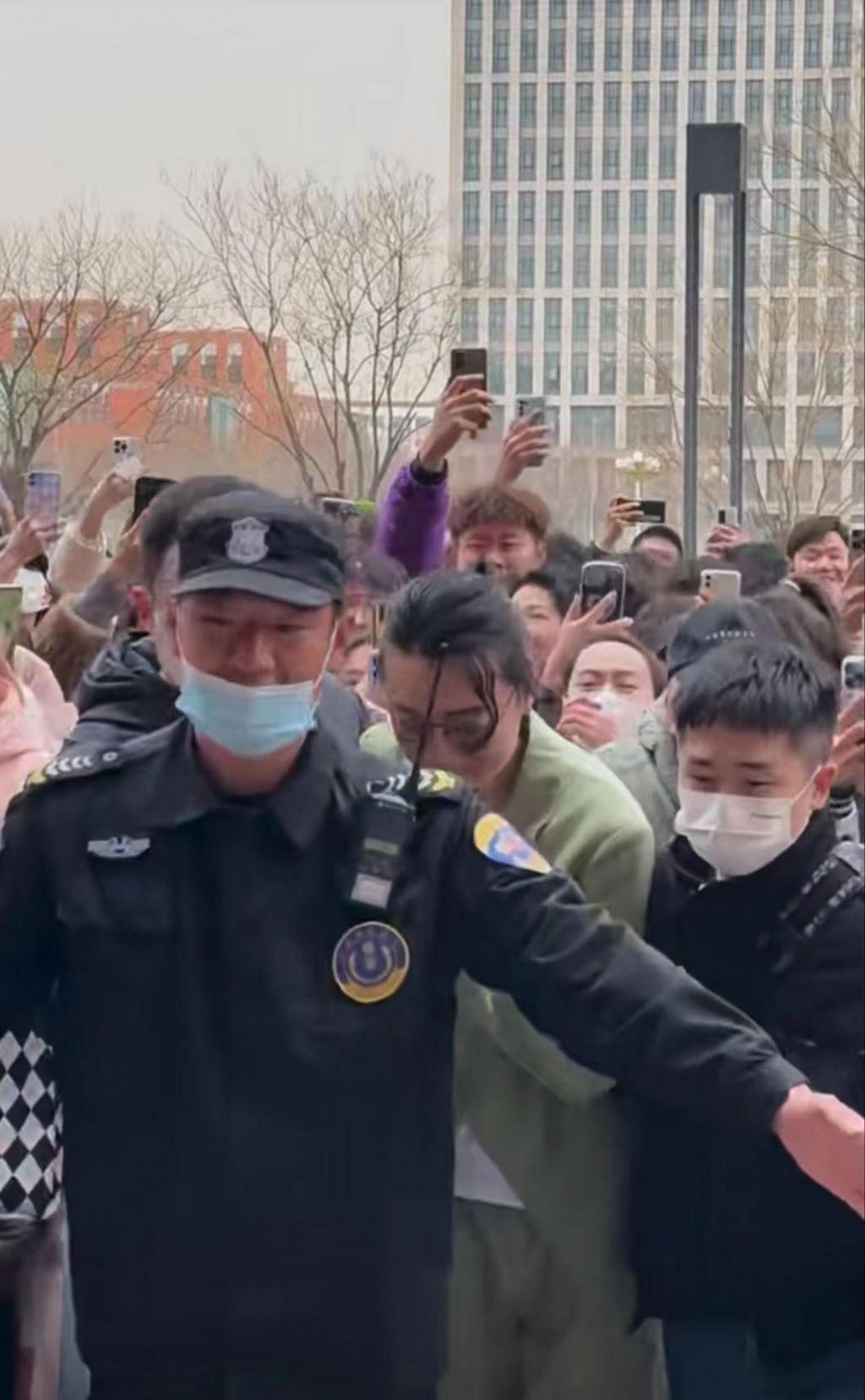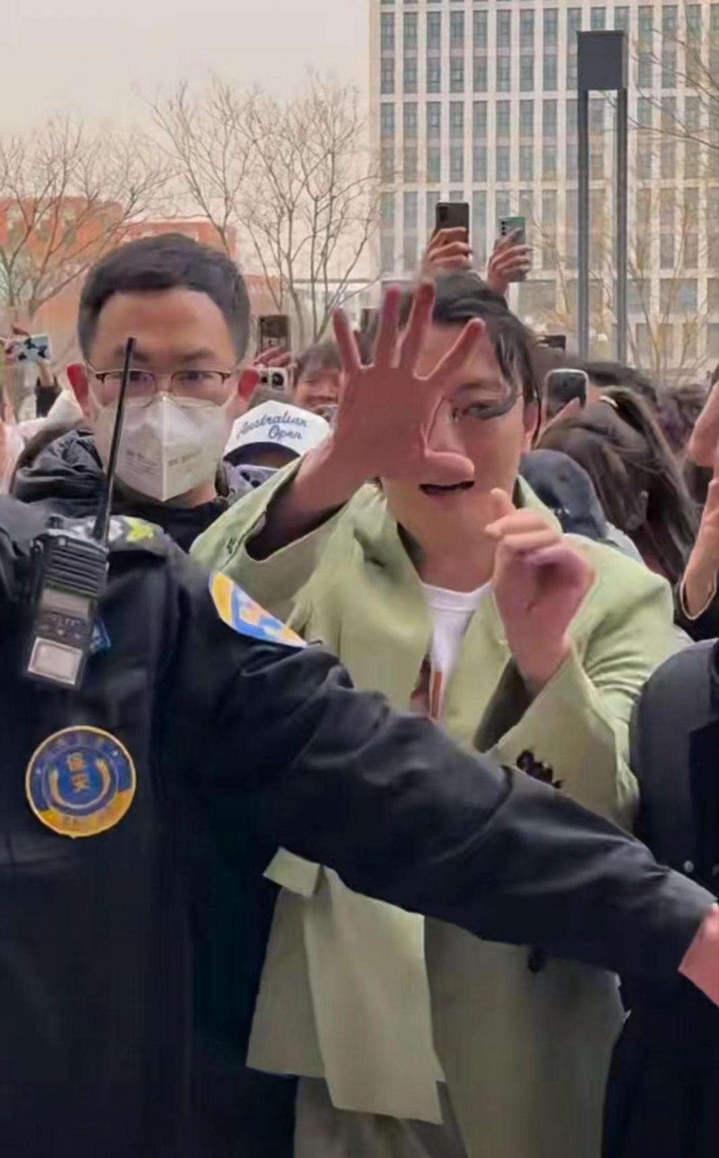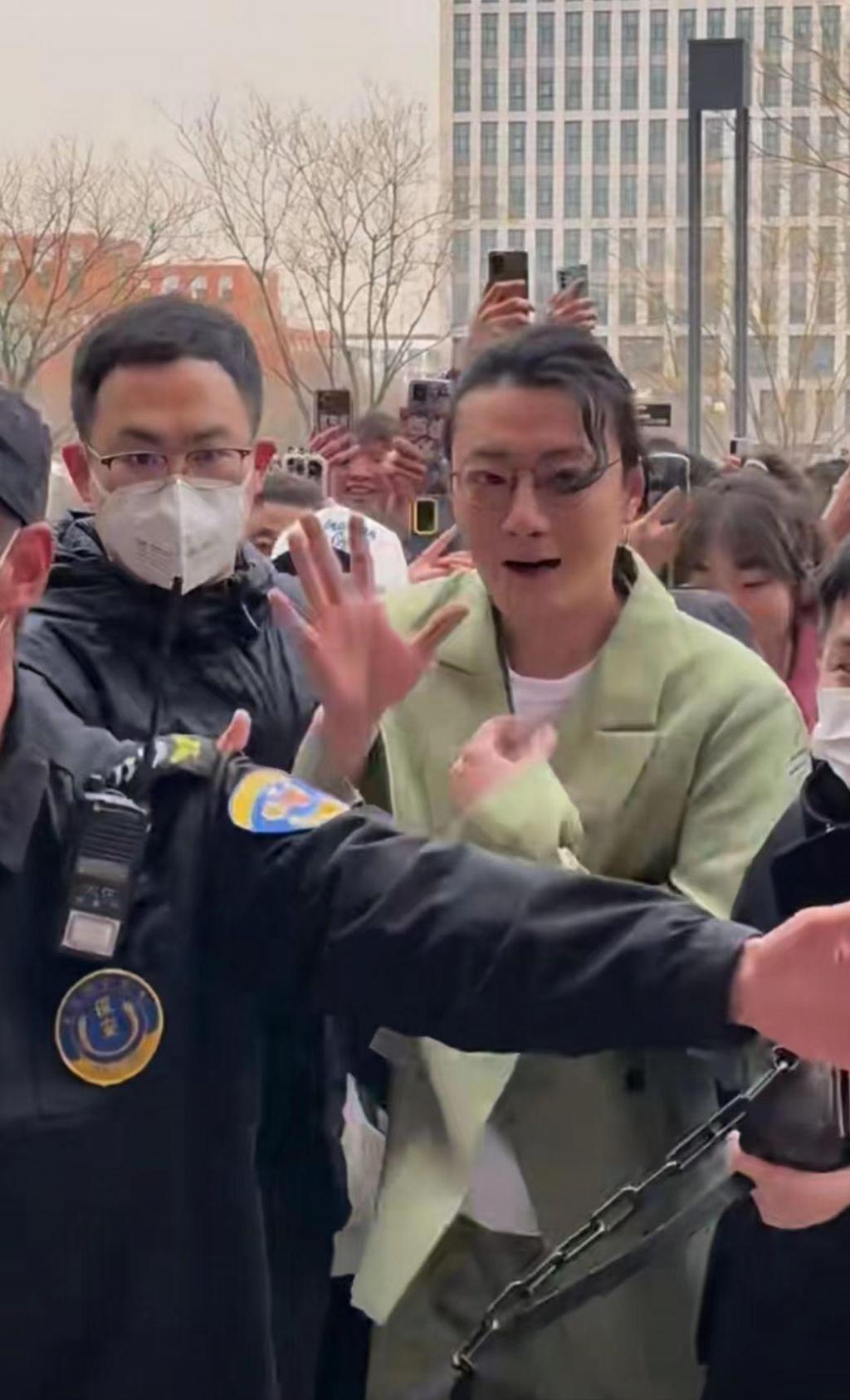 苏小玎仍然穿着熟悉的绿色西装现身,他被众多保安围住,向教学楼走去。非常明显的是,周围的人非常多,苏小玎被堵得走路都是东倒西歪的,看来他也是人气非常高了。